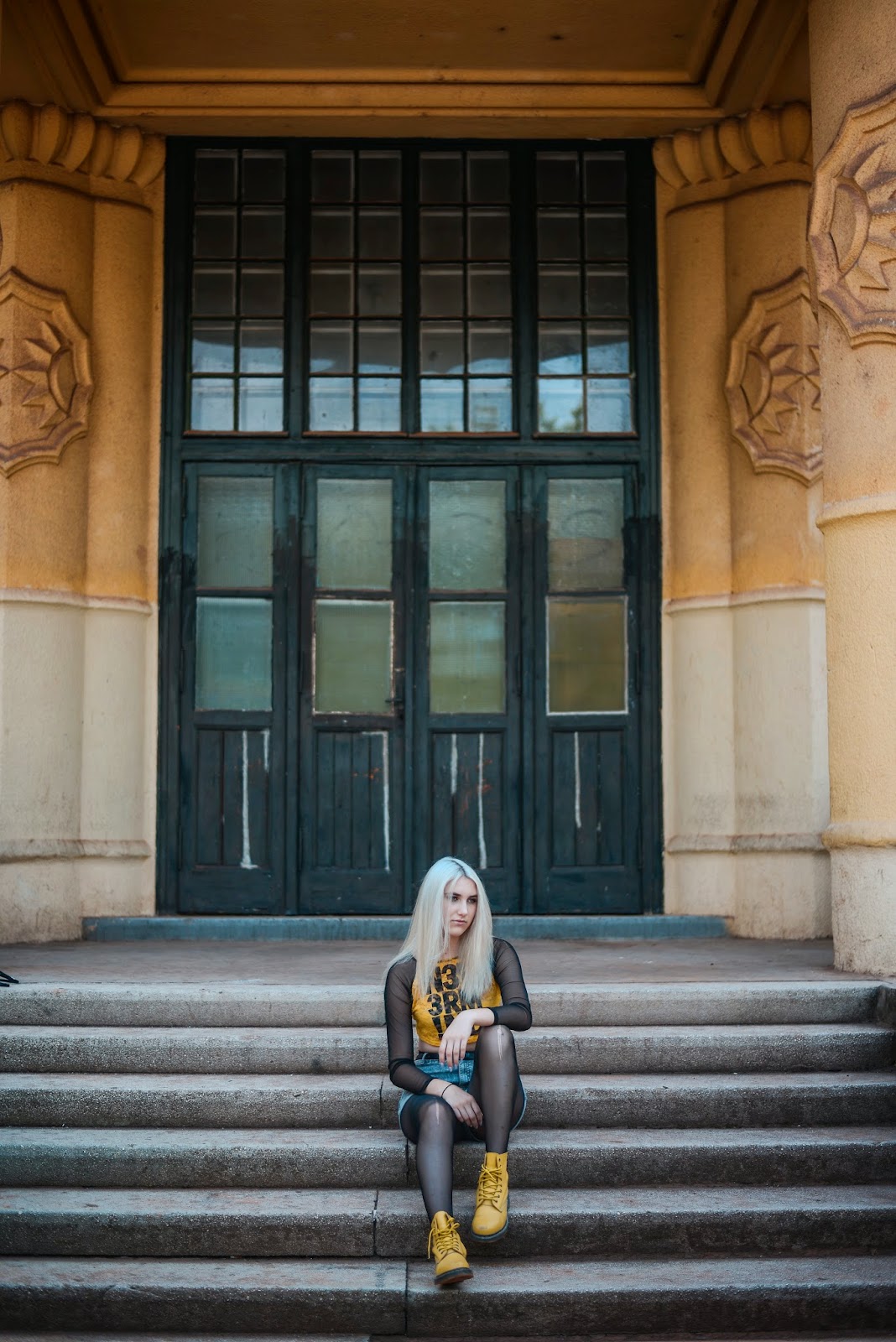 For a bit of rock n roll I wore some ripped tights, a sheer top (black n yellow, yeah. Some time ago I was told by a professor at my high school that a combination of black and yellow clothes causes cancer, but I rather trust her concerning chemistry, not medicine *laugh*), basic shorts and a pair of my fave yellow boots.